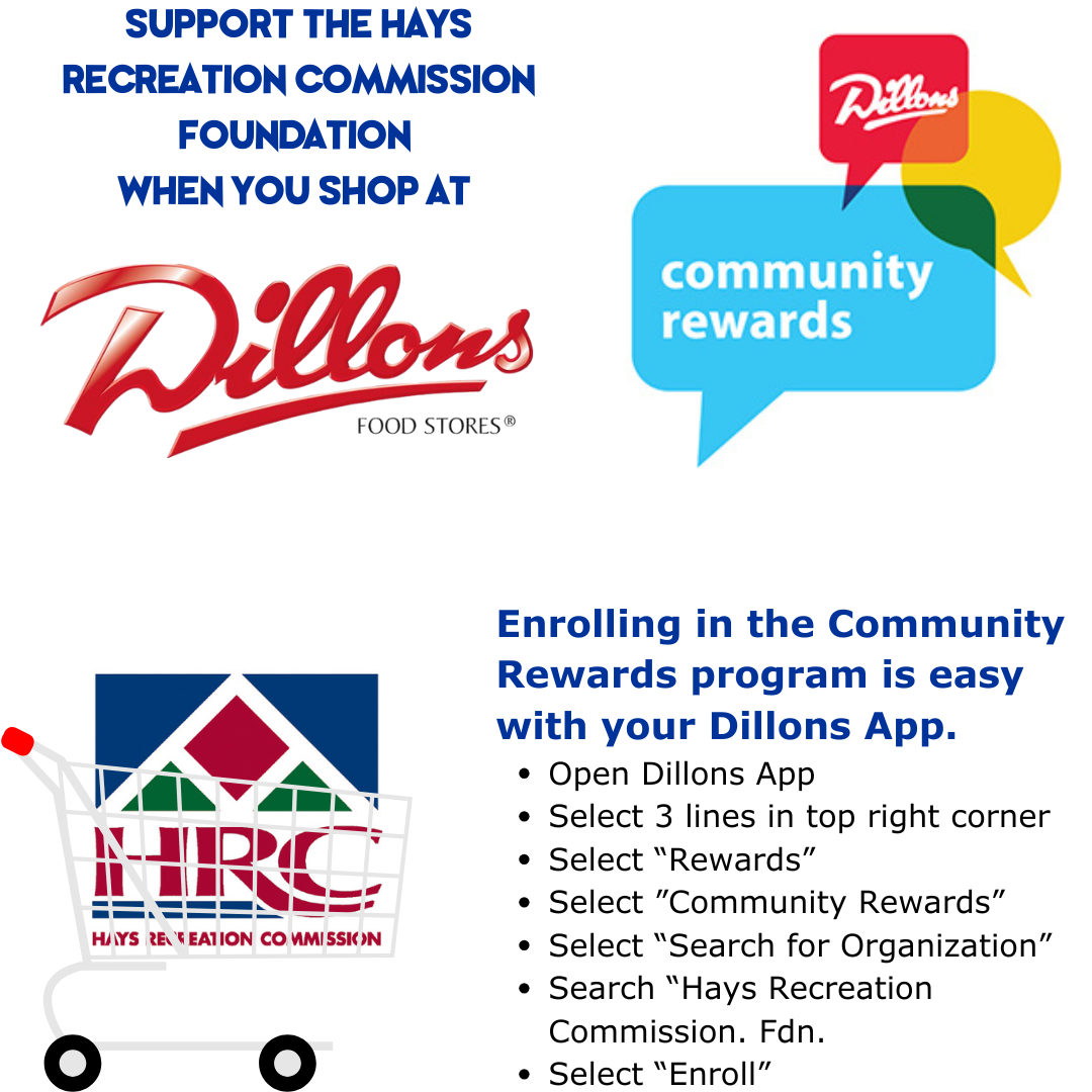 Hays Recreation Commission will also display in the Dillons Community Rewards section of your account, and on your receipts